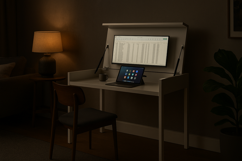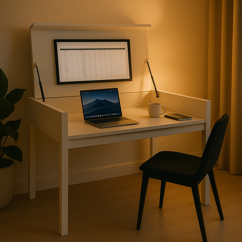 Sharper boundaries: Seperate work from life. Close the desk and your workspace disappears, creating instant mental clarity.